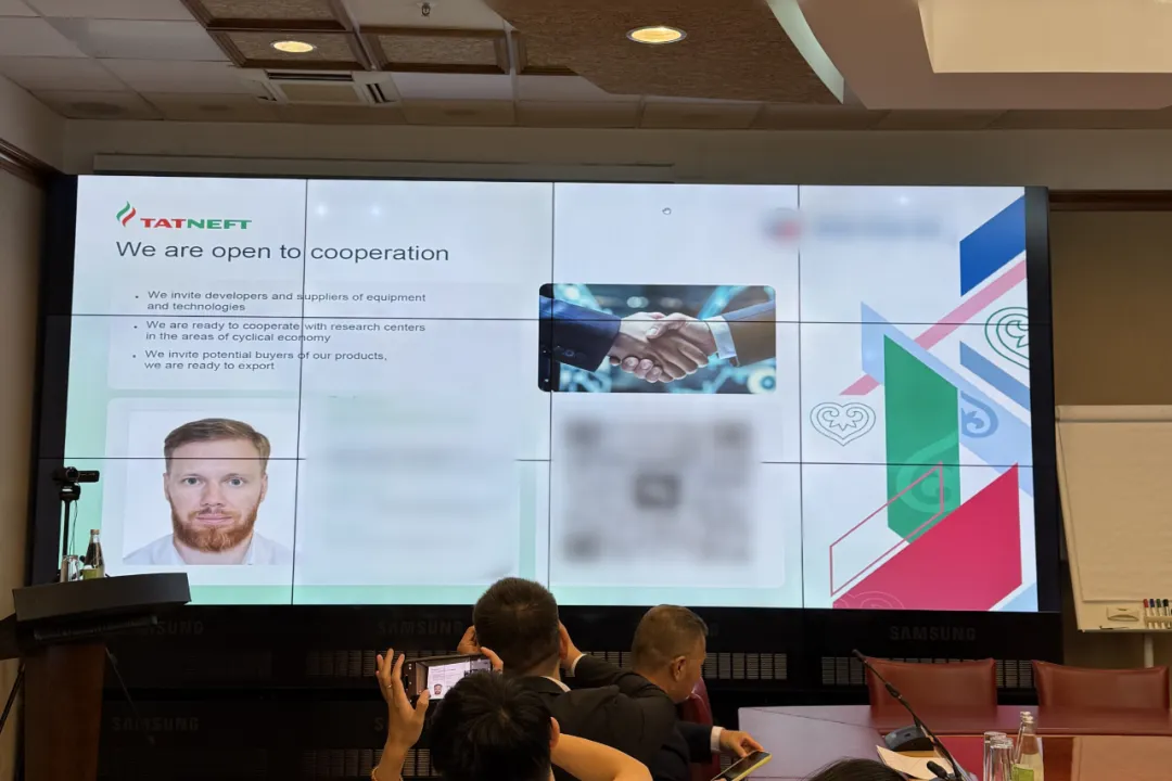鞑靼石油公司外事处处长首先介绍公司概况。他强调,公司在全球40余个国家和地区布局超过20个业务板块,并积极寻求与中国企业在多领域开展深度合作。