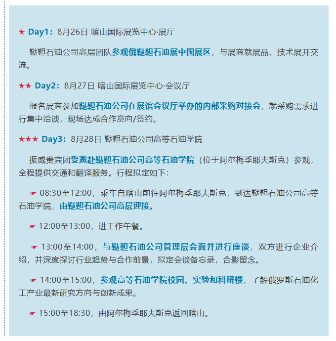 振威-鞑靼石油公司系列专场活动行程安排: