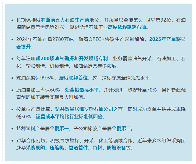 作为系列专场活动的重头戏,鞑靼石油公司考察行程今日重磅发布,为企业深入一线市场、洞察行业前沿、缔结战略合作搭建高效平台。