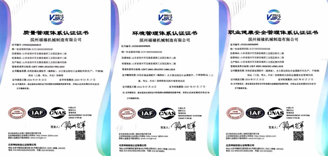能够加工各类管路附件,包括弯头、三通、铜接头、管接头、单头螺栓和快速接头等。其中,弯头、三通、管接头和单头螺栓的通径范围涵盖DN15至DN200,材质选用SS304、SS316和WCB。铜接头的通径为DN15至DN100,材质主要为黄铜。快速接头的通径则从DN15至DN250,材质包括SS304、SS316和铝合金。钢管的通径范围广泛,从DN15至DN1000,材质同样选用SS304、SS316和WCB。所有产品均严格遵循欧洲DIN、美洲ANSI以及中国GB的相关标准。